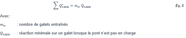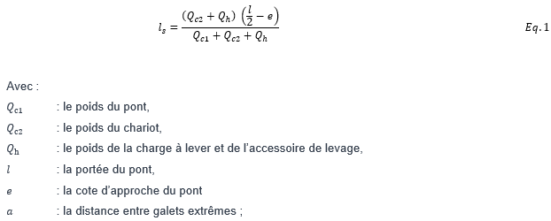 Le déplacement d’un pont roulant n’est pas uniforme le long des voies de roulement. A chaque accélération ou décélération, des forces d’inertie sont exercées sur le pont. A moins que le chariot ne soit situé au milieu du pont, le centre d’inertie n’est pas confondu avec le point d’application de la force d’entraînement. Cet excentrement induit un moment de balourd qui est équilibré par un torseur de réactions transversales appliquées au niveau des galets.