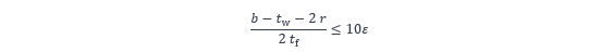 Il est toutefois permis d’utiliser le moment de résistance plastique de la section, en considérant des largeurs efficaces pour la zone comprimée de la partie droite de l’âme (voir la NF EN 1993-1-1, 6.2.2.4), si la semelle comprimée est de classe 1 ou 2. Cette condition peut s’exprimer par :