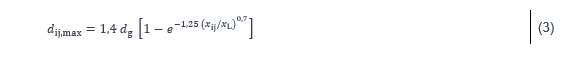Il est possible d’évaluer le déplacement relatif maximal, dij,max, entre deux fondations i et j distantes de xij, selon les formules suivantes :