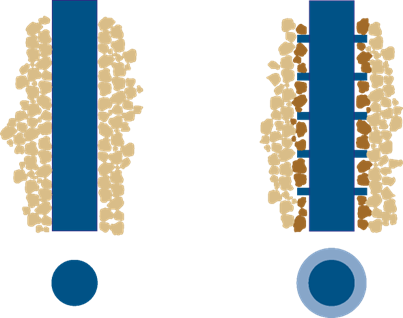 - Dans le cas d’une tige nervurée, on utilise µtige = tan ϕi, avec ϕi = angle de frottement interne de la matière ensilée (parce qu’on considère avoir un frottement matière sur matière – voir aussi les fiches silo 4.1 et 5) ;